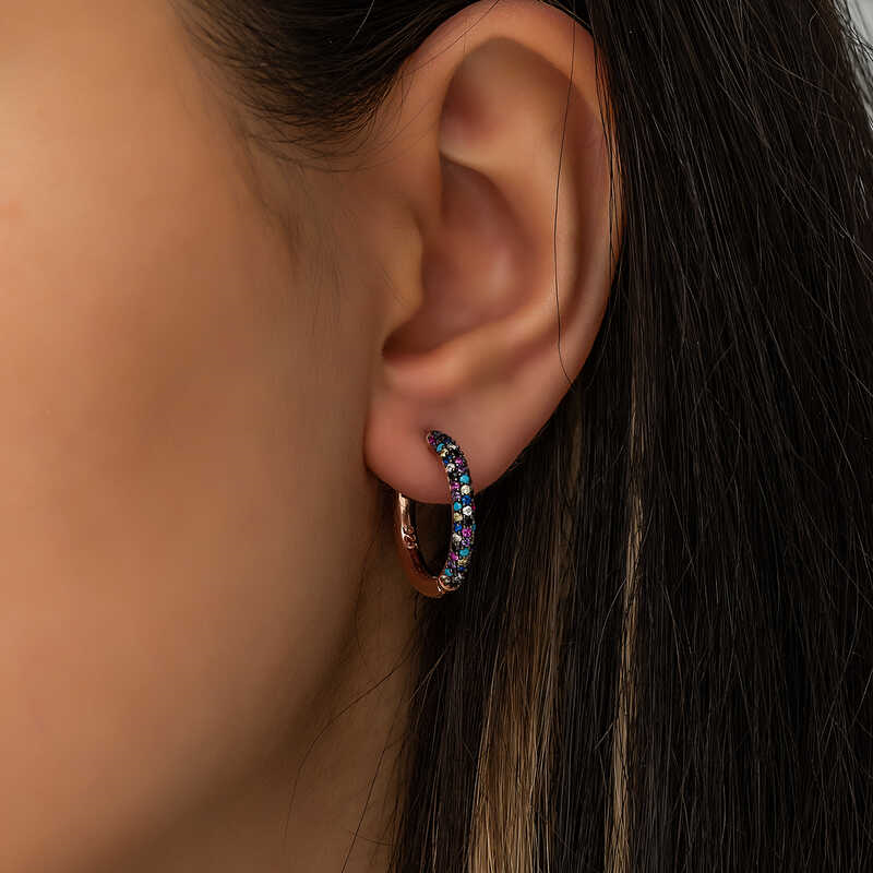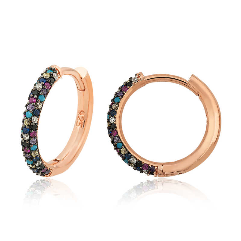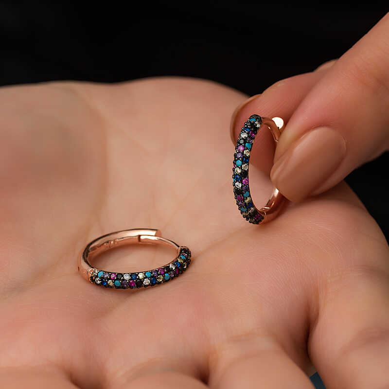 Silver Mix Hoop Women's EarringsYou will love using this earring, which stands out with its stylish design in everyday life and on special occasions. Appealing to all women, these timeless silver mix hoop women's earrings are waiting for you. Silver rose gold plated colored stone hoop women's earrings are a perfect option as a birthday gift, Valentine's Day gift or a gift for mothers on special occasions. Silver earrings are made of 925 sterling silver. Rose gold plated on silver. Rose gold plated silver earring models preserve their shine for a long time and oxidation is delayed. Like all women's earrings, this earring model is also handmade. Due to silver and precious stones, there may be a ± 10% deviation in the average product weight.Earring Thickness: 0.40 cmEarring Diameter: 2.00 cmAverage Weight: 4.75 gr.