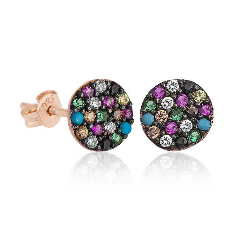 Silver Mixed Stone Circle Earrings Our collection includes different earring models that can adapt to the style of women of all ages, and uniquely designed earring models are waiting for you. Circle earrings created using colorful zircon stones will blow your mind. A minimalist model suitable for daily use, miz stone circle silver earrings are with you at all times. With their sparkle and dazzling structure, silver mixed stone earrings will attract all eyes. You will definitely find the right earring for both you and your loved ones in this collection. Silver mixed stone circle earrings are made of 925 sterling silver. Rose gold plated on silver. Rose gold plated silver women's earrings preserve their shine for a long time and oxidation is delayed. The stone on them is zircon. Like all silver women's earrings, this silver mixed stone circle earring model is produced by hand. Due to silver and precious stones, there may be a ± 10% deviation in the average product weight. Width: 0.80 cm Length: 0.80 cm Average Weight: 1.20 gr.