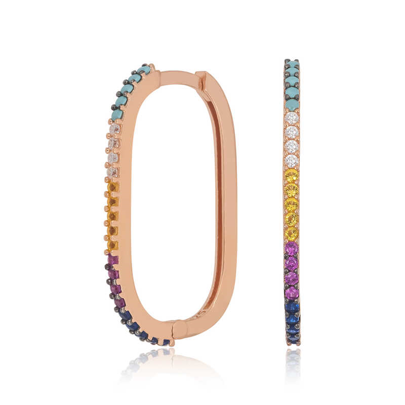 Silver Mixed Stone Hoop EarringsMixed stone hoop earrings, which you can use in all areas of life, are waiting for you to add sparkle and elegance to your outfits. Different trendy designs are released every year. This year's most popular models stand out as multi-stone products. You can add these stylish earrings to your jewelry box or consider them as a gift for a loved one. The stylish mixed stone hoop earrings are made of 925 sterling silver. Rose plated silver. Rose plated silver earrings preserve their shine for a long time and oxidation is delayed. The stones on them are zircon. Like all women's silver products, silver row stone hoop earrings are produced by hand. Due to silver and precious stones, there may be a ± 10% deviation in the average product weight.Width: 1.70 cm Length: 2.80 cm Average Weight: 3.00 gr.
