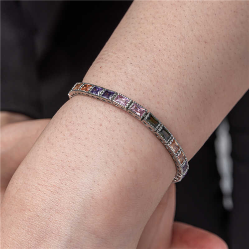 Silver Mixed Stone Waterway Women's BraceletYou will love using this bracelet, which reminds you of stars with its sparkling stones, in everyday life, special occasions and nights. This timeless silver bracelet with stones awaits you, appealing to those who want to achieve a stylish look. Silver mixed stone waterway women's bracelet is a perfect option for a birthday gift, Valentine's Day gift or as a gift for mothers on special occasions. Silver mixed stone waterway women's bracelet is made of 925 sterling silver. Rhodium plated on silver. Rhodium plated women's bracelet preserves its shine for a long time and oxidation is delayed. As with all bracelets, the silver mixed stone waterway women's bracelet is produced by hand. Due to silver and precious stones, there may be ± 10% deviation from the average product weight.Width: 0.40 mmBracelet Length: 19 cmAvg. Weight: 13.30 gr.