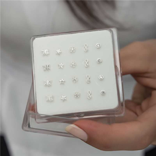 Mixed Model 20" Nose Ring Nose rings worn by young girls of wedding age living in rural areas to demonstrate their purity, cleanliness, and innocence are among the most popular jewelry items. Nose rings, which are indispensable for women around the world today, have taken their place in the jewelry tradition of Mesopotamian culture dating back to the present day. The pin length of the nose rings is 8 mm and the tip is rounded. All models include butterfly, star, snowflake, infinity, and solitaire nose rings with zircon stones. Women's white stone nose rings are made of 925 sterling silver. Rhodium plating is applied to the silver. Rhodium-plated silver women's nose rings preserve their shine for a long time and delay oxidation. As with all silver nose models, the women's silver white stone nose ring is entirely handmade. There is a ± 10% deviation in the stated product weight due to silver and precious stones. can be. Nose Ring Width: 0.30 cm Nose Ring Length: 0.50 cm Average Weight: 0.20 gr.