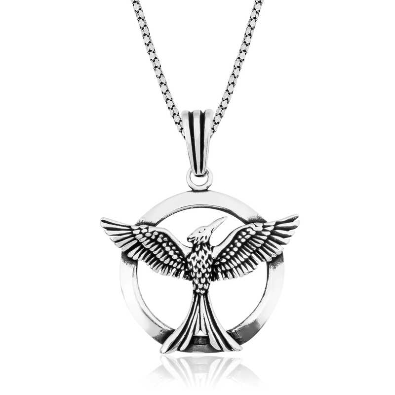 Silver Mockingbird Necklace Can repeat the sounds of twenty or more bird species, including its own species, at a high volume, repeatedly. Inspired by this deep meaning, the Mockingbird necklace can be a gift to yourself or your loved ones on your birthday, Father's Day or special occasions. This stylish necklace is made of 925 sterling silver. Oxidized silver is coated. Oxidized necklaces preserve their shine for a long time. As with all necklaces, the silver Mockingbird necklace is also handmade. Due to silver and precious stones, there may be ± 10% deviation in product weight. Width: 3.20 cm Length: 3.80 cm Avg. Weight: 12.00 gr. Chain Length: 55 cm