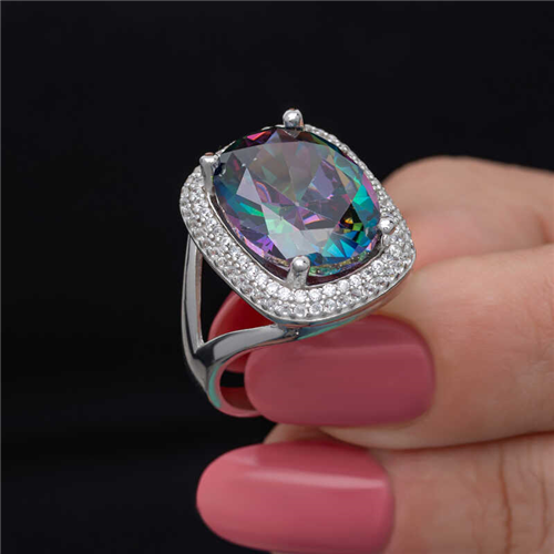 Silver Mystic Stone Women's RingJewelry that has been a symbol of your image for centuries is presented to you in specially designed collections. Reflect your style with silver ring models that accompany you in every moment, from your daily life to your special occasions. Start revealing the creative originality that speaks to your soul with these different, eye-catching designs. Standing out with your interesting style in every environment you enter is now very easy with the silver ring types that can turn your dream combinations into reality... Mystic stone women's ring is made of 925 sterling silver and rhodium plated. All of our silver ring models are hand-crafted. Due to silver and precious stones, there may be a ± 10% deviation in the average product weight.Width: 2.10 cmLength: 2.80 cmAverage Weight: 8 gr.