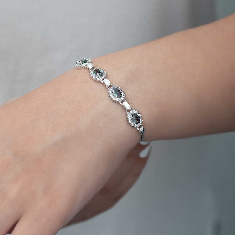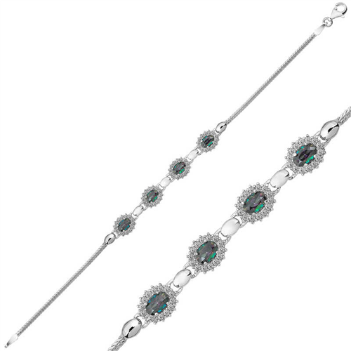 Silver Mystic Topaz Stone BraceletThere are bracelet models to appeal to every taste in silver products. For those who love traditional style bracelets, models with simpler and authentic motifs are also offered in the collection. For those who prefer flashy jewelry, models featuring colored stones such as opal, turquoise, mystic topaz, and zultanite are included. Silver bracelet designs add a pleasant atmosphere to outfits preferred in simple and solid colors. By examining the bracelet models that offer you the most elegant ways to emphasize your style and reflect it outside, you can have bracelet models that you can use at any time of the day. Silver mystic topaz stone women's bracelet is made of 925 sterling silver. This bracelet is rhodium plated. Rhodium plated products preserve their shine for a long time. The stones on it are zircon and mystic topaz. Like all silver women's bracelet models, the silver mystic topaz stone women's bracelet model is also handmade. The length of the bracelet is 19 cm. Due to silver and precious stones, there may be a ± 10% deviation from the average product weight. Width: 0.80 cmLength: 7.00 cmAverage Weight: 6.56 gr.
