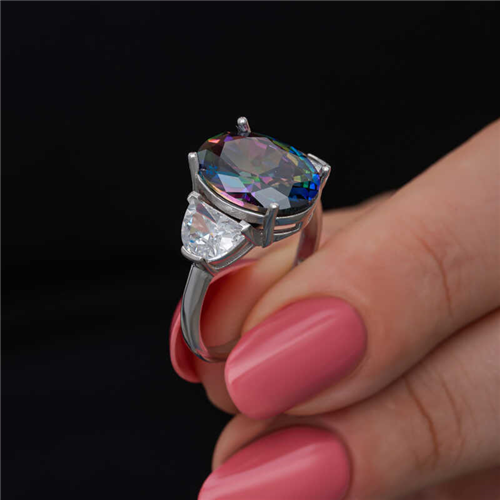 Silver Mystic Zircon Stone Women's RingJewelry that has been the symbol of your image for centuries is presented to you in specially designed collections. Reflect your style with silver ring models that are with you at every moment, from your daily life to your special occasions. Start revealing the creative originality that speaks to your soul with these different, eye-catching designs. It is now very easy to stand out with your interesting style in every environment you enter with the silver ring types that can turn your dream combinations into reality. Mystic zircon stone women's ring is made of 925 sterling silver and rhodium plated. All of our silver ring models are hand-made. Due to silver and precious stones, there may be a ± 10% deviation in the average product weight.Width: 2.10 cmLength: 2.70 cmAverage Weight: 5.40 gr.