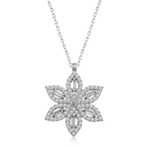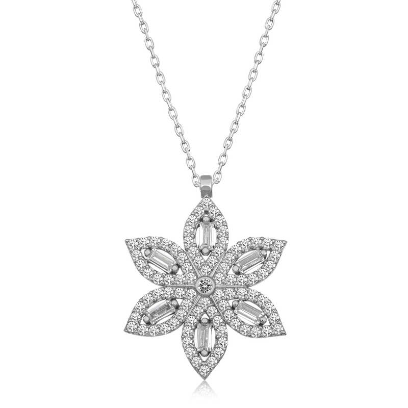 Silver Narcissus Flower Women's Necklace The most special and elegant way to express your feelings to your loved ones is through stylish, colorful, and fragrant flowers that you can send them. Because the narcissus means respect, it is one of the flowers that can be given to those you value and respect in your life. There are different types of narcissus. But they are all generally known and used as Narcissus. It is also known as the flower of beauty and love. The flower, which is among the gifts to be given on special occasions, this time finds meaning with a silver necklace. The silver flower women's necklace crafted with the highest quality, brightest, and most sparkling stones is waiting for those who want to express their love once again, for those who want to say "you are a flower." This specially designed silver narcissus flower women's necklace is made of 925 sterling silver. The silver is rhodium plated. Rhodium plated silver women's necklace models preserve their shine for a long time and oxidation is delayed. The white stones on the necklace are baguettes and zircon. The average silver chain length is 45 cm. Like all women's silver necklace models, the silver narcissus flower women's necklace is also handmade. Due to silver and precious stones, there may be a ± 10% deviation in the specified product weight. Width: 1.80 cm Length: 2.30 cm Weight: 2.90 gr.