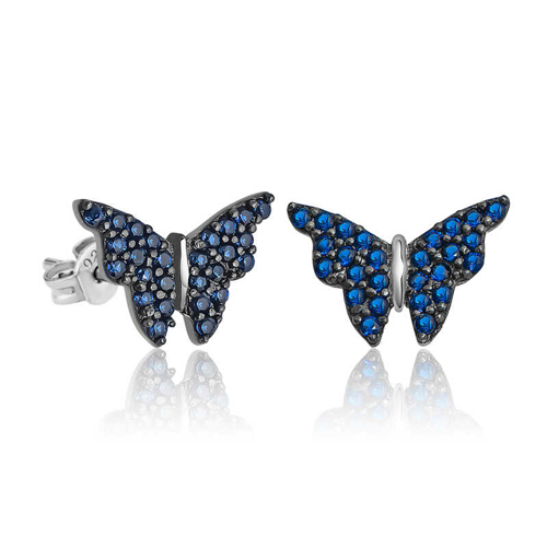Silver Navy Blue Butterfly Earrings Our collection includes different earring models that can adapt to the style of women of all ages, and uniquely designed earring models are waiting for you. The earring created using the butterfly figure will blow your mind. A model suitable for daily use, these earrings are with you at all times. You will love using these dazzling silver butterfly earrings. You will definitely find the right earring for both you and your loved ones in this collection. Silver navy blue butterfly earrings are made of 925 sterling silver. Rhodium plated silver. Rhodium plated silver women's earrings preserve their shine for a long time and oxidation is delayed. The stones on them are zircon. Like all silver women's earrings, this silver navy blue butterfly earring model is also hand-crafted. Due to silver and precious stones, there may be a ± 10% deviation in the average product weight. Width: 2.10 cm Length: 0.80 cm Average Weight: 1.20 gr.