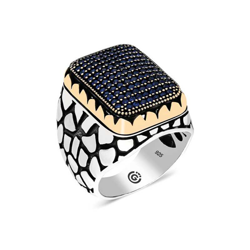 Silver Navy Blue Zircon Stone Square Men's Ring This men's ring model, made of zircon navy blue stone stones on silver, is a stylish accessory that you can use at any time of the day. You can gift this ring to yourself or your loved ones on your birthday, Father's Day or special occasions. The navy blue stone men's ring model is made of 925 sterling silver. Oxide coating is applied on the silver. Oxide coated silver men's ring models preserve their shine for a long time. As with all men's rings, the silver zircon navy blue stone men's ring model is also handmade. Due to silver and precious stones, there may be ± 10% deviation in the average product weight.Width: 2.30 cmLength: 2.80 cmAvg. Weight: 17.50 gr.