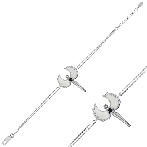 Silver Water Fairy Bracelet The water fairy symbolizes the most beautiful wishes, luck, goodness, and hope. The water fairy necklace symbolizes many desires from love to abundance. Fairy and angel necklace designs are one of the most preferred forms in the jewelry industry. These bracelets, which you can make happy by gifting them to your loved ones on special occasions, will strengthen the bond between you with their sparkling appearance. The jewelry models that you will always wear in your daily life have designs that will showcase your strong stance and keep you up to date with fashion. The bracelet is made of 925 sterling silver. The silver is rhodium plated. Like other bracelets, the silver water fairy bracelet is also hand-crafted. Due to silver and precious stones, there may be a ± 10% deviation in the average product weight. Width: 1.60 cm Length: 2.10 cm Average Weight: 1.85 gr. Chain Length: 20.00 cm