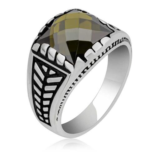 Silver Olive Green Zircon Stone Children’s Men’s Ring