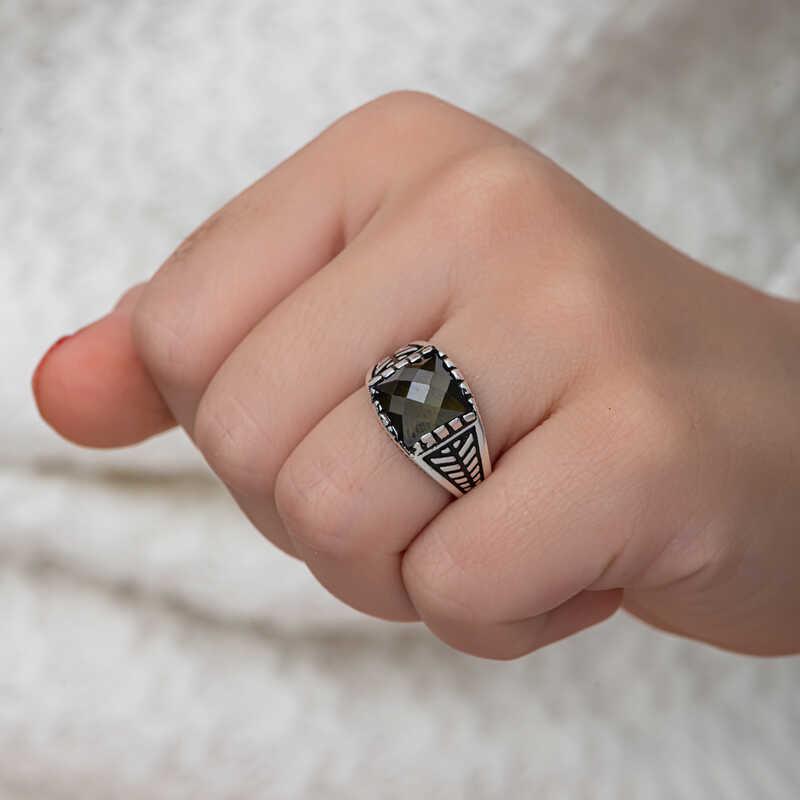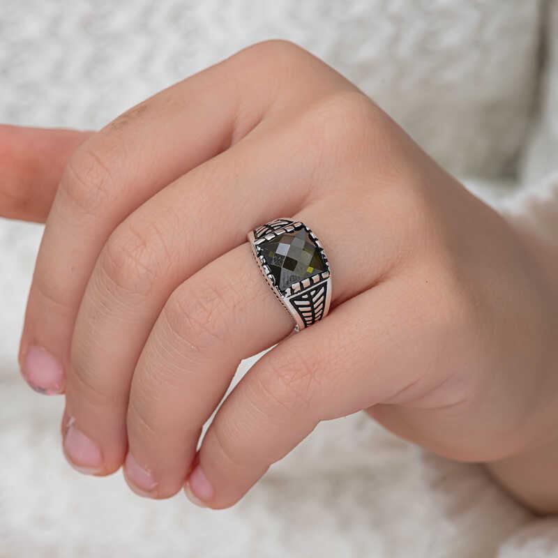 Silver Olive Green Zircon Stone Children's Boys' Ring This ring model, made of zircon stones on silver, is a stylish accessory that you can use at any time of the day. You can make your child happy by gifting this ring to them at regular times or on their birthday. Children's boys' ring model with zircon stones is made of 925 sterling silver. Oxidized silver is coated. Oxidized silver children's rings preserve their shine for a long time. Like all children's boys' rings, the silver zircon stone men's ring model is also produced by hand. Due to silver and precious stones, there may be ± 10% deviation in the average product weight. Ring Width: 1.60 cm Ring Length: 2.20 cm Average Weight: 4 gr.