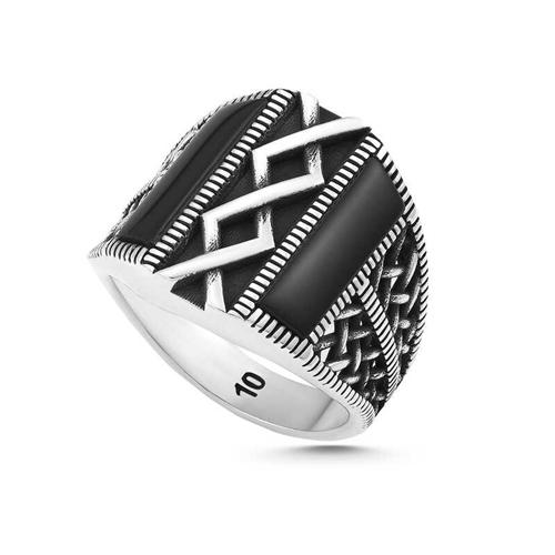 Silver Onyx Stone Men's Ring Onyx, which reached the earth's surface over millions of years, is a stone formed by the heating and cooling of rocks and some components over time. Onyx is known as the stone of luck and is a type of semi-precious stone. Because of its workability and aesthetically elegant, onyx has been used in the making of various ornaments and jewelry from ancient times to the present. Onyx is the sacred stone of the earth signs Taurus, Virgo and Capricorn. People with these signs can be protected from negative energy by choosing onyx stone accessories. You can gift this stylish ring to yourself or your loved ones on your birthday, Father's Day or other special occasions. This stylish ring is made of 925 sterling silver. The silver is oxidized. Oxide-coated rings achieve an authentic appearance. As with all men's rings, the silver onyx stone patterned men's ring model is also handmade. Due to silver and precious stones, there may be a ± 10% deviation from the average product weight. Ring Width: 2.30 cm Ring Length: 2.90 cm Average Weight: 11.00 gr.