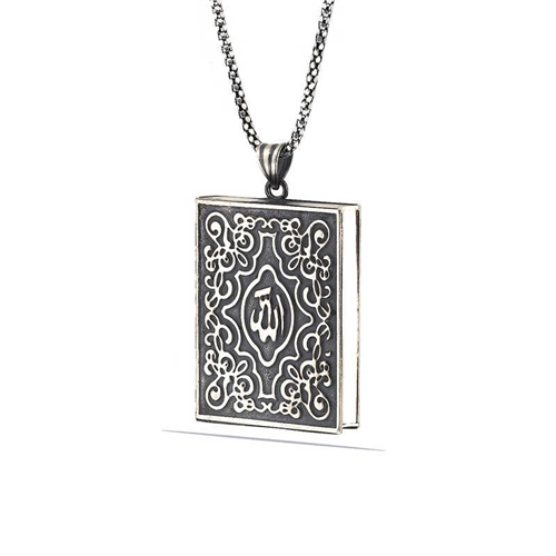 Silver Openable Amulet Necklace with Allah Written Inside Religion is a system based on belief with a spiritual side. Allah is the absolute and only creator of the entire universe and all living and non-living beings. It is a special accessory that believers who hold these thoughts may want to carry and keep with them in their daily lives. This stylish necklace model will be a meaningful way to express spiritual feelings. This necklace with an elegant design will bring peace to you and your loved ones. This Allah amulet necklace with Arabic inscriptions on it is made of 925 sterling silver. Oxidized silver. Oxidized silver necklace models preserve their shine for a long time and oxidation is delayed. The average silver chain length is 55 cm. As with all silver necklace models, the silver openable Allah amulet necklace model is also produced by hand. Due to silver and precious stones, there may be ± 10% deviation in the specified product weight. Product Length: 5.00 cm. Product Width: 3.10 cm. Chain Length: 55.00 cm. Average Weight: 27.00 gr.