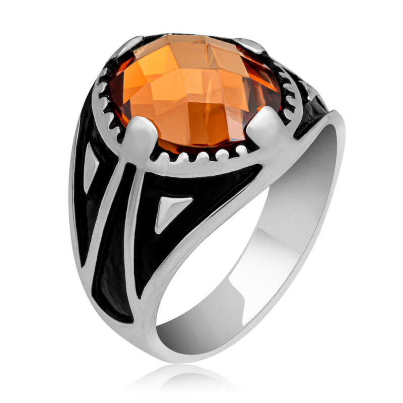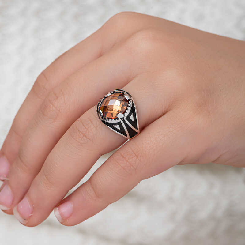 Silver Orange Zircon Stone Children's Ring This ring model, made of zircon stones on silver, is a stylish accessory that you can use at any time of the day. You can make your child happy by gifting this ring to them at regular times or on their birthday. Children's children's ring model with zircon stones is made of 925 sterling silver. Oxidized silver is coated. Oxidized silver children's ring models preserve their shine for a long time. Like all children's rings, the silver zircon stone men's ring model is also produced by hand. Due to silver and precious stones, there may be ± 10% deviation in the average product weight. Ring Width: 1.60 cm Ring Length: 2.20 cm Average Weight: 4 gr.