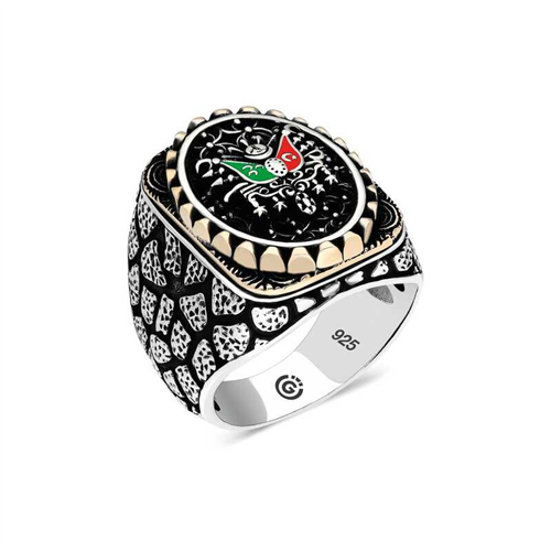 Silver Ottoman Coat of Arms Oval Men's Ring The Ottoman coat of arms oval men's ring model on silver is a stylish accessory that you can use at any time of the day. You can gift this ring to yourself or your loved ones on your birthday, Father's Day or special occasions. The Ottoman coat of arms men's ring model is made of 925 sterling silver. Oxide coating is applied to the silver. Oxide coating preserves its shine for a long time. Like all men's rings, the silver Ottoman coat of arms men's ring model is handmade. Due to silver and precious stones, there may be a ± 10% deviation from the average product weight.Width: 1.50 cmLength: 2.00 cmAverage Weight: 16 gr.