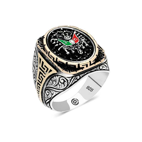 Silver Ottoman Coat of Arms Oval Men's Ring The Ottoman coat of arms oval men's ring model on silver is a stylish accessory that you can use at any time of the day. You can gift this ring to yourself or your loved ones on your birthday, Father's Day or special occasions. The Ottoman coat of arms men's ring model is made of 925 sterling silver. Oxide coating is applied to the silver. Oxide coating preserves its shine for a long time. Like all men's rings, the silver Ottoman coat of arms men's ring model is handmade. Due to silver and precious stones, there may be a ± 10% deviation from the average product weight.Width: 1.50 cmLength: 2.00 cmAverage Weight: 16 gr.