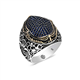 Silver Ottoman Tughra Men's RingTuğra is a symbol or signature that includes the sultan's name and nickname. Tughra, as a branch of calligraphy, has been written by master calligraphers for centuries. In Turkish, it means a special sign containing the sultan's name, or the sultan's signature. Originally, a tughra in the Oghuz dialect means the printed signature of a ruler. The first tughra used by Orhan Gazi contained the phrase "Orhan bin Osman" and is dated 1324, the other 1348. A tughra belonging to Sultan Osman Gazi I has not been found anywhere to this day. Therefore, there are 36 Ottoman sultans, but only 35 Ottoman sultan tughras. The section where the sultan's name and his father's name are written is called the throne, chair, or sere. The section extending from here to the left, from bottom to top, and consisting of two concentric curves, is called the beyze or banner. You can enjoy using the Tughra emblem face, which symbolizes the Ottoman Empire, and gift it to your loved ones. It is made of 925 sterling silver. The silver has been oxidized. The rings retain their shine for a long time and tarnishing is delayed. All of our products are handmade. Due to the silver and precious stones, there may be a deviation of +10% from the stated average product weight.Average Weight: 8.00 gr.