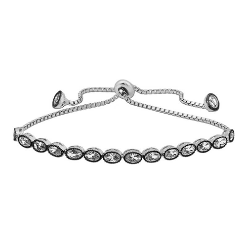 Silver Oval Cut Diamond Mounted Elevator BraceletElevator bracelets are among the first choices of women who appreciate elegant and simple accessories. They are one of the stylish accessories that you can use to complete your style in any environment. You can choose elevator bracelets to add sparkle to your outfits and enhance the elegance of your wrist. If you have a simple style, you can add soft sparkle to your outfits with elevator bracelets. If you are looking for a romantic and meaningful gift for your loved ones, adjustable elevator bracelets can be an ideal choice. Oval cut diamond mounting elevator bracelet is made of 925 sterling silver. Rhodium plated on the silver. Like other bracelets, the silver emerald cut diamond mounting elevator bracelet is also hand-crafted. Due to silver and precious stones, there may be a ± 10% deviation in the average product weight.Width: 0.40 cmChain Length: 14.00 cmAverage Weight: 7.00 gr.