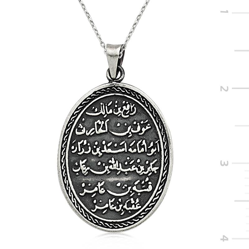 Silver Kıtmir Prayer sans-serif; vertical-align: baseline; color: #a3a3a3; text-align: center;">It has verses 51 and 52 of Surah Al-Qalam, the names of the Companions of the Cave and the word "Kitmir" in the middle. The necklace has the "evil eye verse" and the names of the Companions of the Cave. It is believed that reciting this prayer will be beneficial for protection from the evil eye and other evils and to increase abundance at home or at work. It is a prayer that should be hung on the four walls of the workplace and house to increase abundance. This stylish necklace model is made of 925 sterling silver. Oxide coating is applied on silver. Women's necklaces with oxide coating preserve their shine for a long time. Like all silver women's necklaces, the silver Kıtmir prayer oval necklace model is also produced by hand. There may be a ± 10% deviation in the average product weight due to silver and precious stones.
