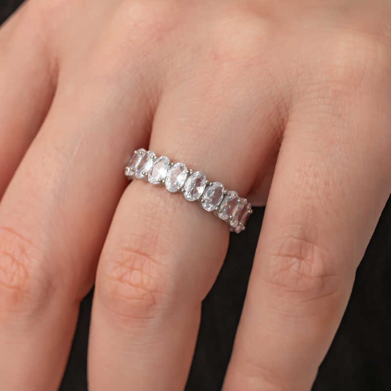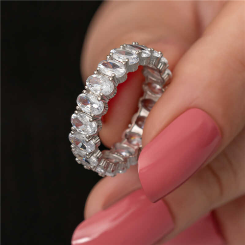 Silver Oval Stone Eternity Ring for WomenThis stylish ring model, adorned with sparkling zircon stones, is a very elegant option that you can choose as a birthday gift, Valentine's Day gift or a gift for mothers on special occasions. This eternity ring designed in the shape of an eternity is made of 925 sterling silver. The silver is rhodium-plated. The stones on it are zircon. As with all women's silver rings, the silver oval stone eternity ring model is handmade. Due to silver and precious stones, there may be ± 10% deviation from the average product weight.Width: 0.50 cmRing Diameter: 2.40 cmAverage Weight: 3.50 gr.