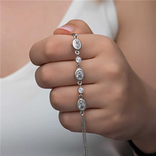 Silver Oval Stone Women's BraceletThe bracelet models offered to you in a wide range, from traditional and flashy motifs to simple designs, manage to attract the appreciation of women of all styles. You can have wrist models that will allow you to achieve an elegant and at the same time stylish look, and manage to stand out in any environment, suitable for classic or sporty clothing. By examining the bracelet models offered to you with a wide model options, you can own silver jewelry that you can wear for a long time. Our bracelet models that you can also give as a gift to your loved ones on special occasions are waiting for you. The silver oval stone women's bracelet is made of 925 sterling silver. This bracelet is rhodium plated. Rhodium plated products preserve their shine for a long time, turning the silver into rhodium color. The stones on the bracelet are zircon. Like all silver women's bracelet models, the silver oval stone women's bracelet model is produced by hand. Due to silver and precious stones, there may be a ± 10% deviation from the average product weight.Width: 0.70 cmLength: 1.00 cmBracelet Length: 21.00 cmAverage Weight: 5.60 gr.