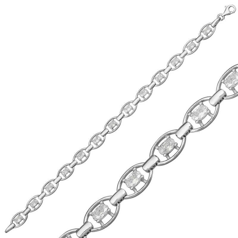 Silver Oval Waterway Women's BraceletYou can have waterway bracelets, which are among the first choices of women who appreciate elegant and simple accessories, in different designs. Designed with fine and meticulous workmanship, you can use waterway bracelets to complete your style in any environment. You can choose waterway bracelets to add sparkle to your outfits and enhance the elegance of your wrist. If you have a simple style, you can add soft sparkle to your outfits with waterway bracelets. If you are looking for a romantic and meaningful gift for your loved ones, these waterway bracelets can be an ideal choice. You can choose this simple and elegant bracelet, which has always been loved, as a birthday gift, Valentine's Day gift or a gift for mothers on special occasions. The silver waterway women's bracelet is made of 925 sterling silver. The silver bracelet is rhodium plated. Rhodium plated women's bracelets preserve their shine for a long time and delay oxidation. Like all silver women's bracelet models, this silver waterway women's bracelet is also entirely handmade. Due to silver and precious stones, there may be a ± 10% deviation from the average product weight.Width: 0.70 cmLength: 1.10 cmChain Length: 18 cmAverage Weight: 12.50 gr.