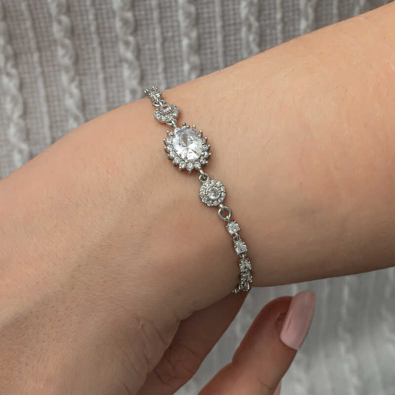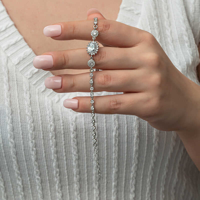 Silver Oval Waterway Women's BraceletYou will love using this bracelet, which resembles stars with its sparkling white stones, in everyday life, special occasions and nights. The timeless oval waterway silver bracelet, which appeals to all women who want to achieve a stylish look, is waiting for you. The silver oval waterway women's bracelet is a perfect option for a birthday gift, Valentine's Day gift or as a gift for mothers on special occasions. The silver oval waterway women's bracelet is made of 925 sterling silver. Rhodium plated on silver. Rhodium plated women's bracelets preserve their shine for a long time and oxidation is delayed. Like all women's bracelets, the silver oval waterway women's bracelet is produced by hand. Due to silver and precious stones, there may be a ± 10% deviation in the average product weight.Bracelet Width: 1.10 cmBracelet Length: 1.30 cmChain Length: 21 cmAverage Weight: 6.20 gr.