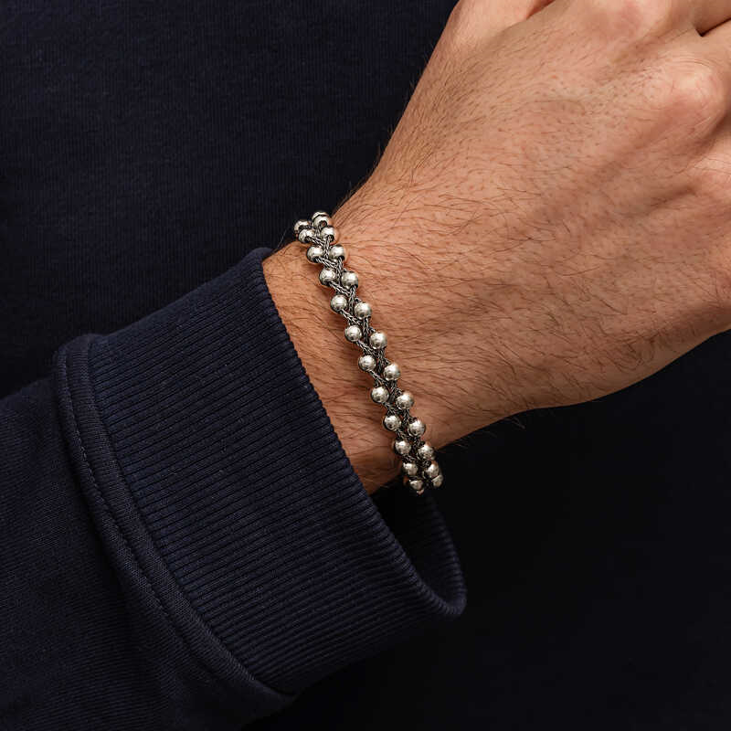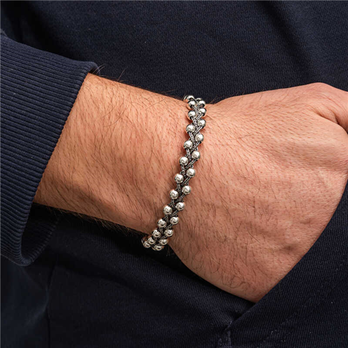 Silver Oxidized Ball Men's Bracelet Silver is a classic and timeless metal. With this feature, the oxidized ball bracelet becomes a preferred accessory for both everyday and special occasions. The oxidized process makes the bracelet unique. Since each accessory has a different texture and pattern, the wearer has the opportunity to express their own style. A silver men's bracelet is an excellent option for special occasions such as a birthday gift, Valentine's Day gift or a gift for fathers. Oxidized silver is coated. Silver bracelets with oxidized coating preserve their shine for a long time. Like all silver bracelets, the silver ball men's bracelet is produced by hand. Due to silver and precious stones, there may be a ± 10% deviation in the average product weight. Bracelet Width: 0.80 cm Bracelet Length: 21 cm Average Weight: 21.00 gr.