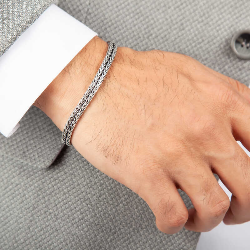 Silver Oxidized Men's BraceletYou will love using this noble bracelet, which you can choose for everyday life or special occasions. The timeless silver oxidized men's bracelet, which appeals to all men who want to achieve a stylish look, is waiting for you. Silver men's bracelet is a perfect option for a birthday gift, Valentine's Day gift or as a gift for fathers on special occasions. Oxidized men's bracelet; Made of 925 sterling silver. Oxidized coating is applied on silver. Oxidized silver-plated men's bracelets preserve their shine for a long time and oxidation is delayed. Like all men's bracelets, the silver oxidized men's bracelet is produced by hand. Due to silver and precious stones, there may be a ± 10% deviation in the average product weight.Bracelet Width: 0.60 cmBracelet Length: 22 cmAverage Weight: 21.30 gr.