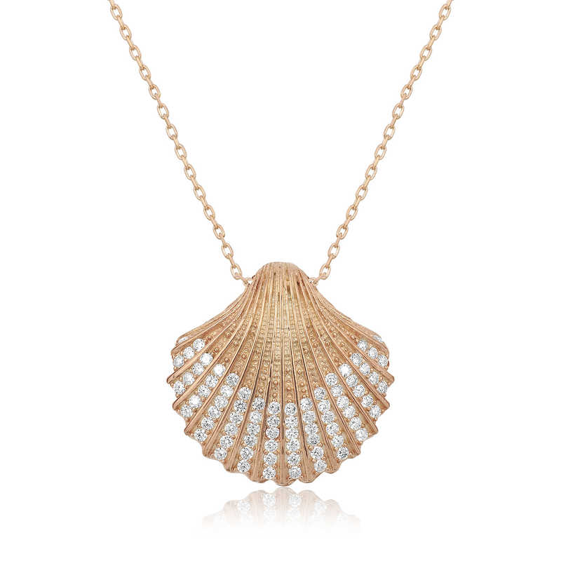 Silver Oyster Women's Necklace Are you looking for a special gift for your lover? If you prefer simple elegance, an oyster necklace is just for you... You can give this elegant, romantic gift to your lover or all your loved ones on your birthday, anniversary, New Year's Eve and Valentine's Day. Rose gold plated silver. Rose gold plated silver women's necklaces preserve their shine for a long time and oxidation is delayed. Rose gold plating gives silver a copper color. Like all women's silver necklaces, the silver oyster necklace is also handmade. Due to silver and precious stones, there may be a ± 10% deviation in the average product weight. Width: 2.20 cm Length: 2.20 cm Weight: 5.40 gr.