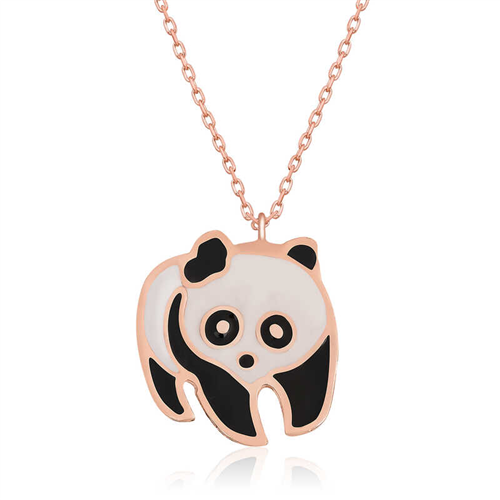 Silver Panda Women's Necklace The cold enamel technique is a method used in jewelry and silver jewelry making. It is widely used in the jewelry industry. The reason it is so popular is that it adds color to jewelry and gives it a pleasant appearance. This necklace model, which you and your loved ones will enjoy wearing, will be one of the best gifts for your loved ones. The necklace is made of 925 sterling silver. Rose gold-plated silver. Rose gold-plated silver women's necklace models preserve their shine for a long time and delay oxidation. The average silver chain length is 45 cm. Like all silver women's necklaces, the silver panda women's necklace is handmade. Due to silver and precious stones, there may be a ± 10% deviation from the average product weight. Width: 1.60 cm Length: 1.80 cm Average Weight: 2.40 gr.