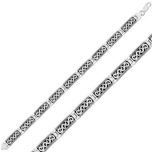 Silver Patterned Men's BraceletYou'll love using this stylish bracelet model for everyday use or special occasions. This timeless silver patterned men's bracelet is perfect for men who want to look attractive. This silver men's bracelet is a perfect choice for a birthday gift, a Valentine's Day gift, or a gift for fathers on special occasions. This bracelet is made of 925 sterling silver. Rhodium-plated silver. Rhodium-plated men's bracelets preserve their shine for a long time and delay oxidation. Like all men's bracelets, this silver patterned men's bracelet is handmade. Due to silver and precious stones, there may be a ± 10% deviation from the average product weight.