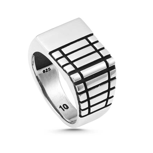Silver Patterned Men's Ring Men choose from thousands of classic and sporty varieties when choosing jewelry for themselves. The highest quality and stylish silver rings are offered to men. Why not a nice silver ring to impress a woman? You can make your loved ones happy by gifting a silver patterned men's ring. The patterned men's ring is made of 925 sterling silver. Oxidized silver is coated. Oxidized silver men's ring models gain an authentic look. Like all silver men's ring models, the silver patterned men's ring is produced entirely by hand. Due to silver and precious stones, there may be ± 10% deviation from the average product weight. Width: 2.40 cm Length: 2.40 cm Avg. Weight: 9.50 gr.