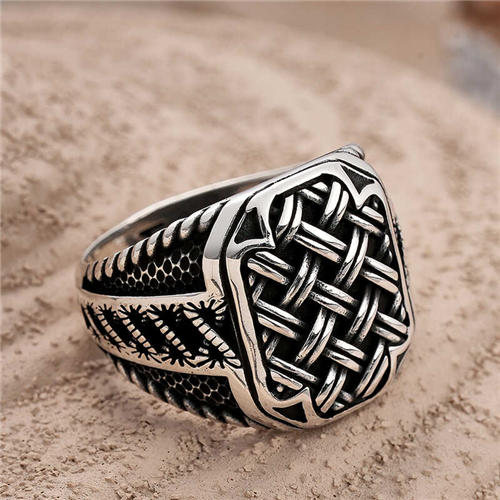 Silver Patterned Men's Ring This stylish design was created for you ... This perfect ring; you can gift it to yourself or your loved ones on your birthday, Father's Day or special occasions. This men's ring that everyone will love is made of 925 sterling silver. Oxidized coating is applied on the silver. Like all silver men's rings, the silver patterned men's ring is produced entirely by hand. Due to silver and precious stones, there may be ± 10% deviation from the average product weight. Width: 2.30 cm Length: 2.60 cm Weight: 10.50 gr.