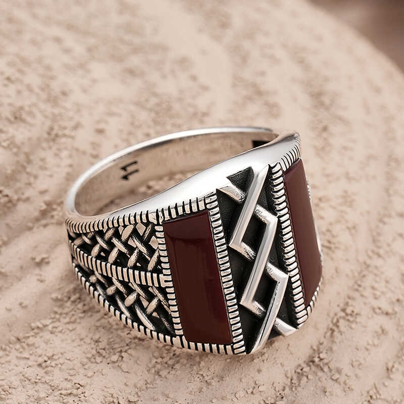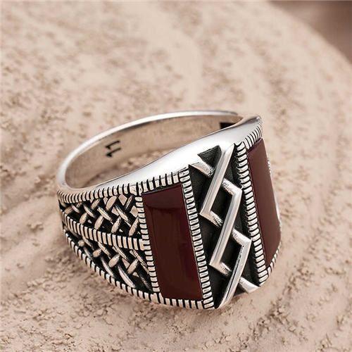 Silver Patterned Men's RingThis stylish design was created for you ... This perfect ring; you can gift it to yourself or your loved ones on your birthday, Father's Day or special occasions. This men's ring that everyone will love is made of 925 sterling silver. Oxidized coating is applied on the silver. Like all silver men's rings, the silver patterned men's ring is produced entirely by hand. Due to silver and precious stones, there may be ± 10% deviation from the average product weight.Width: 2.40 cmLength: 2.70 cmWeight: 10.50 gr.