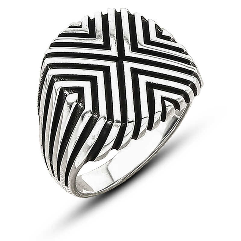 Silver Patterned Men's RingThis stylish design was created for you ... This perfect ring; you can gift it to yourself or your loved ones on your birthday, Father's Day or special occasions. This men's ring that everyone will love is made of 925 sterling silver. Oxidized coating is applied on the silver. Like all silver men's rings, the silver patterned men's ring is produced entirely by hand. Due to silver and precious stones, there may be ± 10% deviation from the average product weight.Width: 2.40 cmLength: 2.60 cmWeight: 10.30 gr.