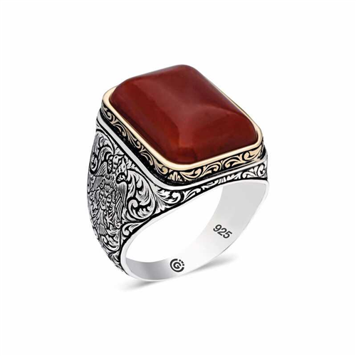 Silver Patterned Red Zircon Stone Square Men's RingThis men's ring model, made of Patterned Red Zircon stone on silver, is a stylish accessory that you can use at any time of the day. You can gift this ring to yourself or your loved ones on your birthday, Father's Day or special occasions. The Patterned Red Stone men's ring model is made of 925 sterling silver. Oxide coating is applied on the silver. Oxide coating preserves its shine for a long time. As with all men's rings, the silver Patterned Red Zircon Stone Square men's ring model is produced by hand. Due to silver and precious stones, there may be ± 10% deviation from the average product weight.Average Weight: 17.00 gr.
