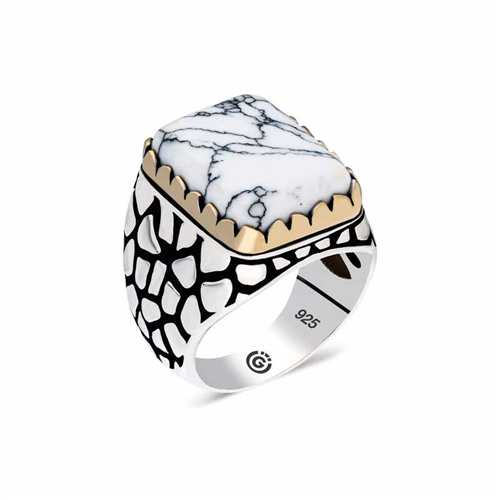 Silver Patterned White Square Men's RingThis men's ring model, made of patterned white stones on silver, is a stylish accessory that you can use at any time of the day. You can gift this ring to yourself or your loved ones on your birthday, Father's Day or special occasions. The white stone men's ring model is made of 925 sterling silver. Oxide coating is applied to the silver. Oxide coating preserves its shine for a long time. As with all men's rings, the silver patterned white stone men's ring model is also handmade. Due to silver and precious stones, there may be a ± 10% deviation from the average product weight.Average Weight: 17.00 gr.
