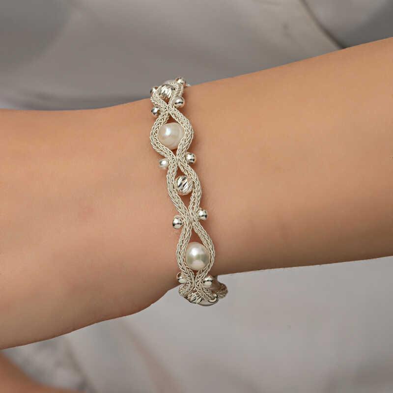 Silver Pearl Kazaziye Knit Bracelet is a hand art made using knitting techniques, from the pure silver wires, no accidents or accidents. The bracelet is also made as a pendant, as it is used in Tespihs. Mesh crash bracelet is completely the eye of hand labor. The pearl crash mesh bracelet, which will appeal to those who want to catch a stylish look, is waiting for you. Silver mesh crash bracelet is an excellent option that can be preferred in birthday gifts, Valentines day gifts or special days. Silver wristband 1000 adjustment is made of pure silver percent handcraft. oxide coating on silver is made. Due to silver and precious stones, the average product weight specified can be ± 10% deviation. Width : 1.00 cm Size : 18 cmOrt. Weight : 10 gr.