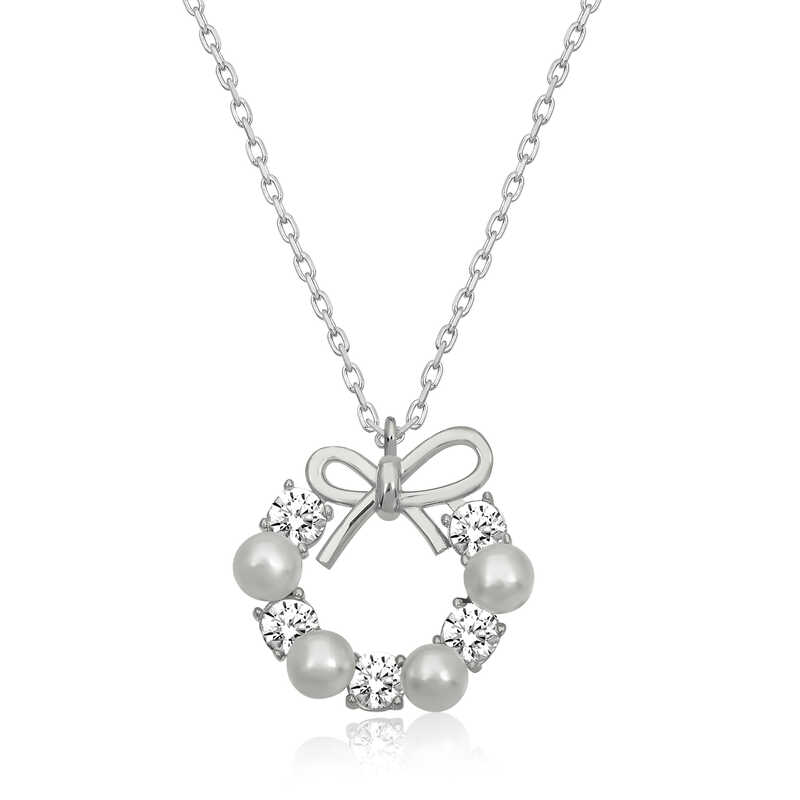 Silver Pearl Ribbon Women's Necklace This timeless silver pearl stone necklace, which appeals to all women who want to create an elegant look, is waiting for you. How about adding sparkle to your surroundings with the dazzling sparkle of rhodium-plated silver, pearl and zircon stones... A pearl necklace that both you and your loved ones will enjoy wearing will also be one of the best gifts to share your love... It is made of 925 sterling silver. Rhodium plating is done on silver. Rhodium-plated products preserve their shine for a long time and oxidation is delayed. The white stones on them are zircon and the pearl is cultured pearl. All of our products are handmade. Due to silver and precious stones, there may be ± 10% deviation in product weight. Width: 1.80 cm Length: 1.70 cm Chain Length: 45 cm Average Weight: 3.40 gr.