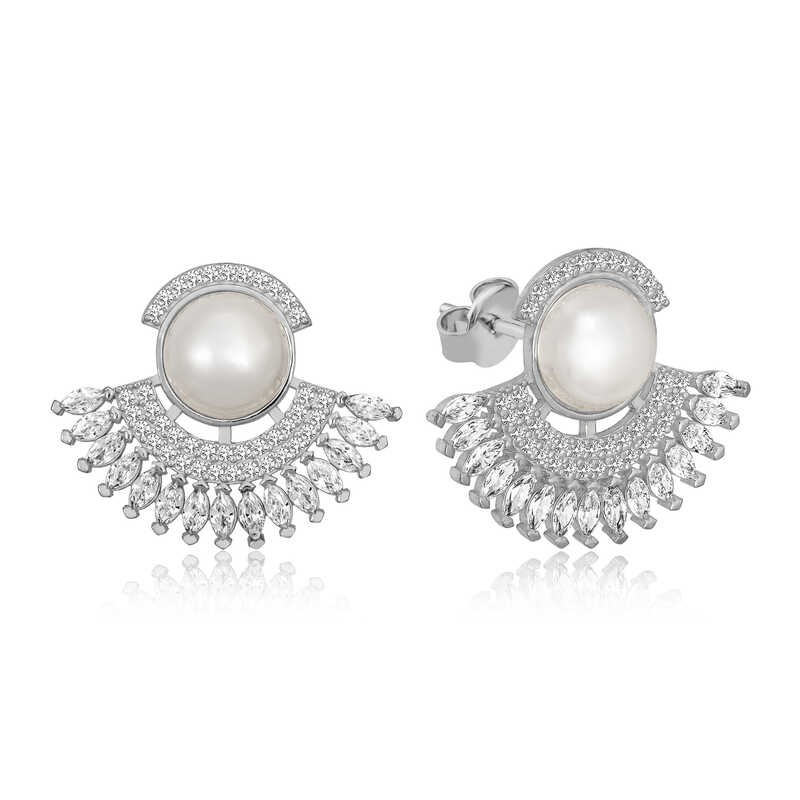 Silver Pearl Women's EarringsAppealing to all women who want to create an elegant look, these timeless silver pearl stone earrings are waiting for you. How about adding sparkle to your surroundings with the dazzling sparkle of rhodium-plated silver, pearl and zircon stones... Pearl earrings, which both you and your loved ones will enjoy wearing, will also be one of the best gifts to share your love... Made of 925 sterling silver. Rhodium plating is done on silver. Rhodium-plated products preserve their shine for a long time and oxidation is delayed. The white stones on them are zircon and the pearl is cultured pearl. All of our products are handmade. Due to silver and precious stones, there may be a ± 10% deviation in product weight.Width: 3.00 cmLength: 2.40 cmAverage Weight: 8.10 gr.