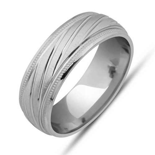 Silver Pen Rhodium Wedding Ring This silver-colored wedding ring draws attention with its stylish and modern design. Pen line patterns offer fine details and an elegant appearance on the surface. Thanks to rhodium plating, this surface, which is increased in durability and maintains its shine for a long time, stands out with its elegance. Wedding rings are preferred to symbolize the commitment of couples to each other or to carry a special meaning. This wedding ring, which is a perfect option for both daily use and special occasions, symbolizes your love and elegance. All of our products are handmade and there may be ± 10% deviation in product weight due to precious stones. Wedding Ring Diameter: 2.20 cm Wedding Ring Width: 6 mm Average Weight: 5.70 gr