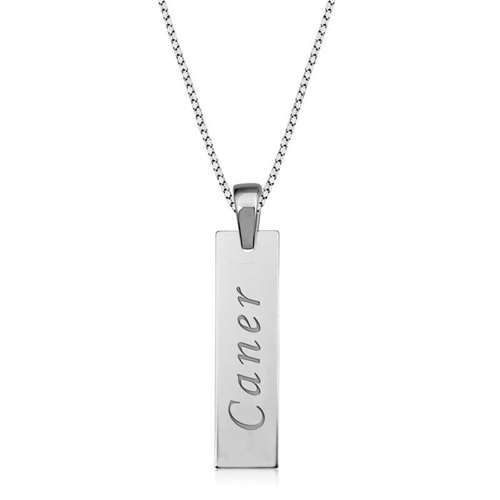 Silver Personalized Bar NecklaceYou can use this personalized necklace that suits your chic and sporty style very comfortably in your daily life. The bar necklace that can be written with letters or names in silver is a perfect option as a birthday gift or Valentine's Day gift on special occasions. The silver necklace is made of 925 sterling silver. Rhodium plated. Rhodium plated silver personalized bar necklace preserves its shine for a long time, gives the silver a rhodium color and delays oxidation. As with all necklaces, the silver personalized bar necklace is produced by hand. Due to silver and precious stones, there may be ± 10% deviation in the average product weight. Note: Please specify the letter or name you want written on the necklace in the notes section.Necklace Width: 1.10 cmNecklace Length: 4.70 cmAverage Weight: 10.70 gr.