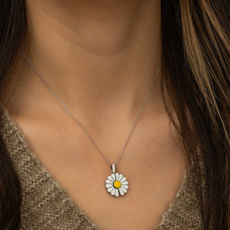 Silver Personalized Daisy Necklace Daisy flower expresses the meaning of pure love. One of its most important features is that there is one on each stem. This stylish necklace, inspired by the fortune-telling of "loves you", "loves you not", is waiting for you. A personalized daisy necklace is a perfect option for a birthday gift, Valentine's Day gift or a gift for mothers on special occasions. The silver daisy personalized women's necklace is made of 925 sterling silver. This necklace is rhodium plated. Rhodium plated silver women's necklace models preserve their shine for a long time and delays the tarnishing of the silver. As with all our silver women's necklace models, the silver personalized daisy women's necklace model is produced by hand. Due to silver and precious stones, there may be a ± 10% deviation in the average product weight. Width: 1.50 cm Length: 1.50 cm Avg. Weight: 3.60 gr.