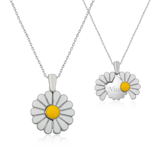 Silver Personalized Daisy Necklace Daisy flower expresses the meaning of pure love. One of its most important features is that there is one on each stem. This stylish necklace, inspired by the fortune-telling of "loves you", "loves you not", is waiting for you. A personalized daisy necklace is a perfect option for a birthday gift, Valentine's Day gift or a gift for mothers on special occasions. The silver daisy personalized women's necklace is made of 925 sterling silver. This necklace is rhodium plated. Rhodium plated silver women's necklace models preserve their shine for a long time and delays the tarnishing of the silver. As with all our silver women's necklace models, the silver personalized daisy women's necklace model is produced by hand. Due to silver and precious stones, there may be a ± 10% deviation in the average product weight. Width: 1.50 cm Length: 1.50 cm Avg. Weight: 3.60 gr.