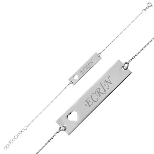 Silver Personalized Named Heart Plate Women's Bracelet The legendary name written bracelets of once upon a time are with you again. One of the best gifts you can buy for your loved ones is undoubtedly the one that tells their story. With a name plate bracelet, you can always carry the name of either your loved ones or yourself on your wrist. All of our products are handmade. Due to silver and precious stones, there may be ± 10% deviation in product weight. Note: Please indicate the name you would like to be written on in the notes section when ordering. Personalized products are not exchanged or returned. Width: 3.80 cm Length: 0.80 cm Avg. Weight: 2.00 gr.