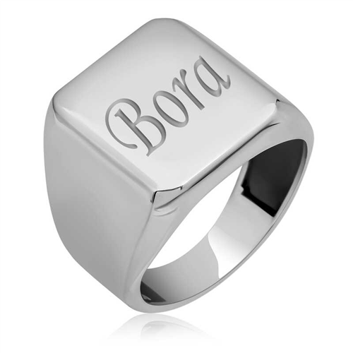 Silver Personalized Square Men's RingLet your name come to life on the skin of your loved one with a named ring. Decorate your loved one's finger with love with this special ring that young lovers can choose on special occasions. A ring that your loved ones will wear with pleasure as well as you will be one of the most meaningful gifts. The silver personalized men's ring is made of 925 sterling silver. Rhodium plated silver. Rhodium plated silver rings preserve their shine for a long time and oxidation is delayed. As with all men's ring models, the silver personalized square men's ring is produced by hand. There may be a ± 10% deviation from the average product weight due to silver and precious stones. NOTE: The delivery time of the product is 2 business days. Returns cannot be accepted for personalized products. Please specify the name in the notes section.Width: 2.30 cmLength: 2.50 cmWeight: 9 gr.