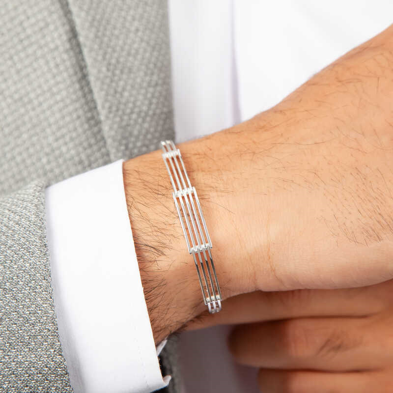 Men's Bracelet with Silver PiecesWhy shouldn't nice jewelry be the way to impress a woman? Just like women, men also need jewelry that complements their outfits. Every man has a different style and accessories that reflect it. Our highest quality men's jewelry is here for you. You can buy silver accessories that fit every concept, from sporty to classic, for yourself or as a gift to your loved ones. The men's bracelet with pieces is made of 925 sterling silver. Micro silver plating is applied on the silver. Micro silver plated silver men's bracelet models preserve their shine for a long time and oxidation is delayed. Like all silver bracelet models, the men's bracelet with silver pieces is also produced by hand. Due to silver and precious stones, there may be a ± 10% deviation in the average product weight.Width: 0.80 cmBracelet Length: 21 cmAverage Weight: 12.60 gr.
