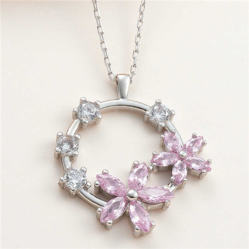 Silver Pink Flower Women's Necklace Why not express your feelings to your loved ones with an elegant flower patterned necklace? This stylish necklace, which is among the gift options that you can send to her on special occasions, is among the best ways to make your loved ones happy. Crafted with the highest quality, brightest, and most sparkling stones, the silver pink flower women's necklace is waiting for those who want to express their love once again, for those who want to say "you are a flower." This specially designed silver pink flower women's necklace is made of 925 sterling silver. Rhodium plated silver. Rhodium plated silver women's necklace models preserve their shine for a long time and oxidation is delayed. The average silver chain length is 45 cm. Like all women's silver necklace models, the silver pink flower women's necklace is also handmade. Due to silver and precious stones, there may be a ± 10% deviation in the specified product weight. Width: 2.20 cm Length: 2.30 cm Average Weight: 2.90 gr.