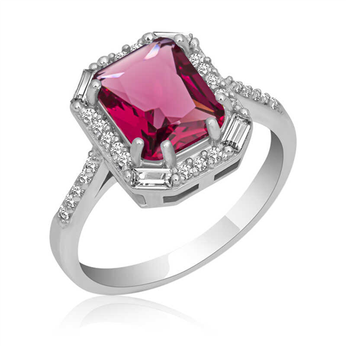 Silver Pink Baguette Square Women's RingThis specially designed pink baguette square ring, which you can use easily in daily life, is made of 925 sterling silver. Rhodium plated silver. Rhodium plated women's silver ring models preserve their shine for a long time and oxidation is delayed. The stones on the ring are zircon. It is a perfect gift option for your loved one on birthdays, Valentine's Day and special occasions. As with all of our silver women's ring models, this baguette cut women's ring is also produced entirely by hand. Due to silver and precious stones, there may be ± 10% deviation from the average product weight.Width: 1.90 cm.Length: 2.40 cm.Avg. Weight: 3.40 gr.